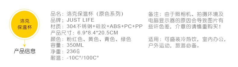 洛克保温杯(原色系列)350ml尺寸:6.9x8.4x20.5cm